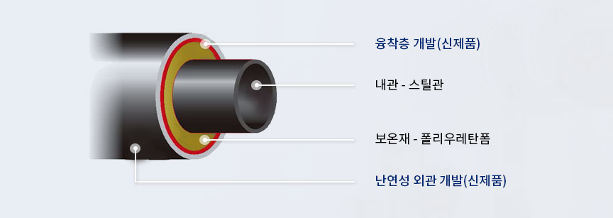 외관은 HDPE을 사용하므로 수분 및 공기가 완전 차단되어 내관 부식 및 보온재의 변화가 전혀 없고 시공 후 품질이 그대 로 유지되므로 수리, 보온재 교체 등 유지보수비가 필요 없음